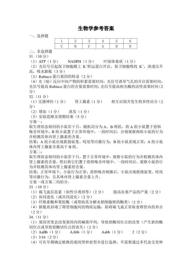 2024届河南省郑州市周口市高三下学期第二次质量预测生物答案