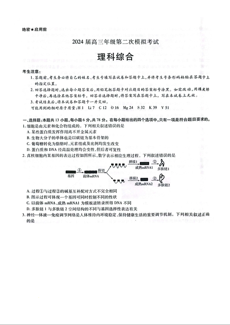 河南省四市2024届高三3月联考(焦作濮阳安阳鹤壁二模)理科综合