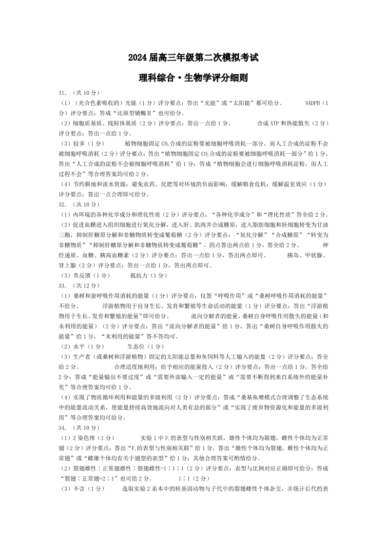 河南省四市2024届高三3月联考(焦作濮阳安阳鹤壁二模)生物评分细则