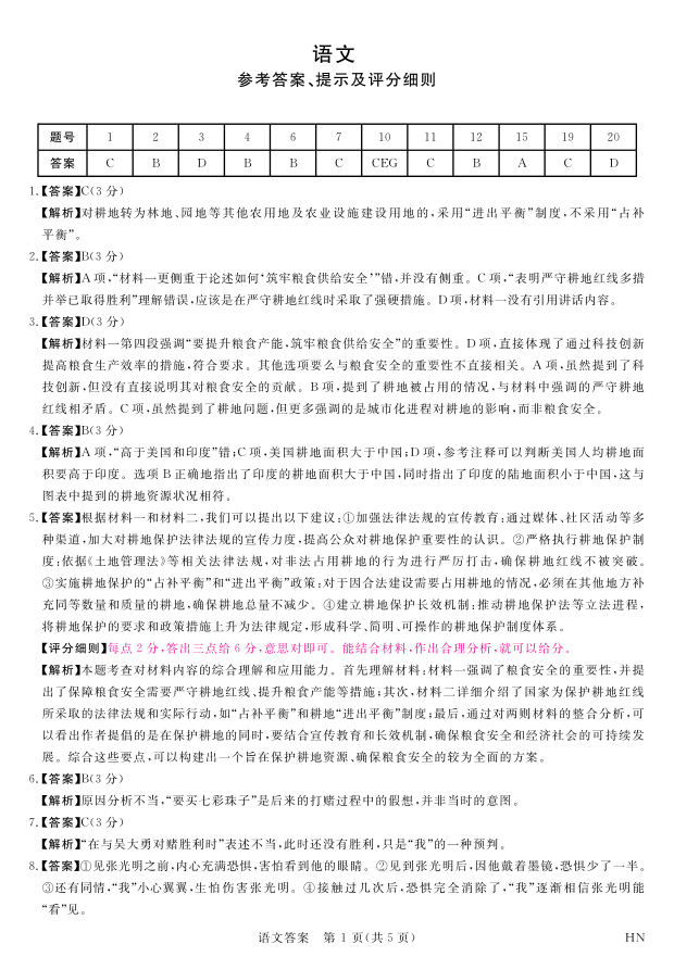 河南省八市重点高中2024届高三4月第一次模拟语文答案