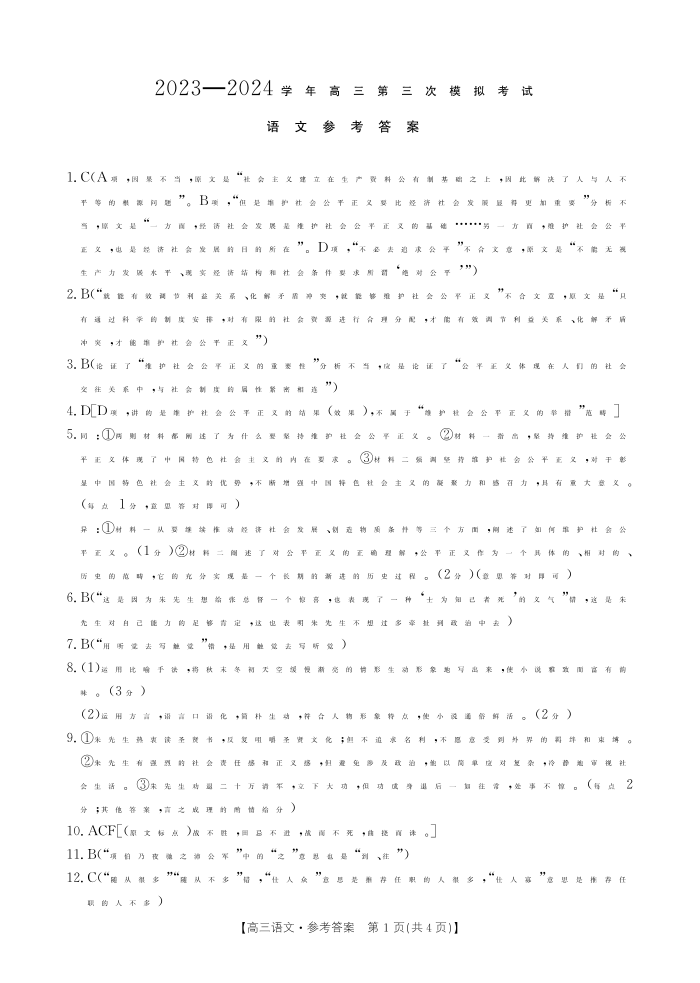河南省新乡市2024届高三下学期三模考试(三模)语文答案