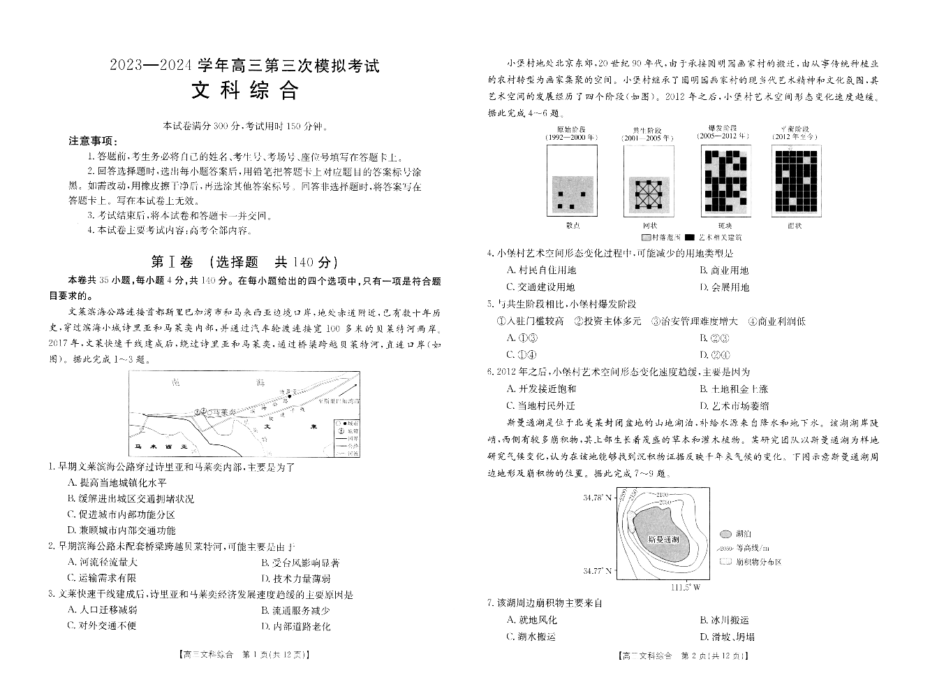 河南省新乡市2024届高三下学期三模考试(三模)文科综合