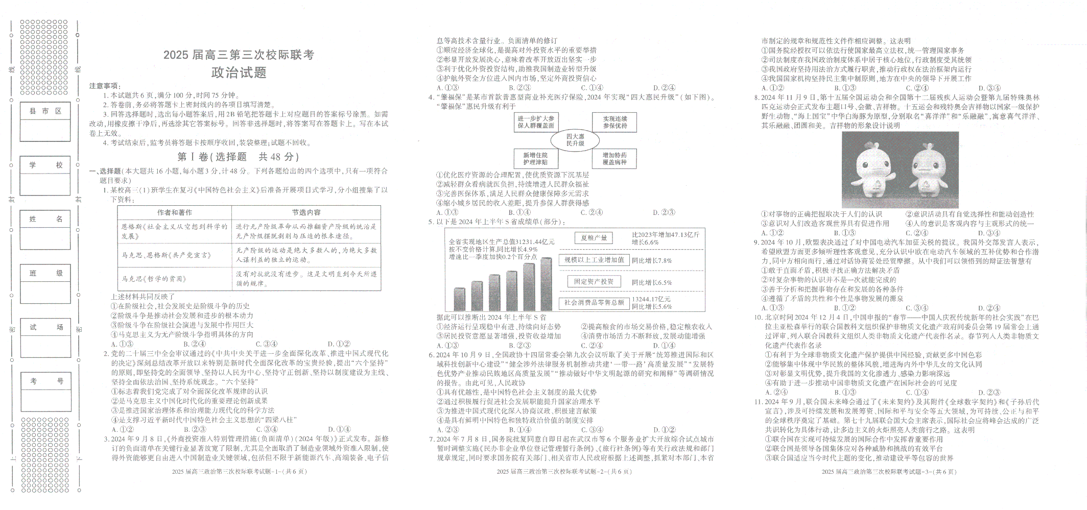 陕西省汉中市2025届高三上学期12月第三次校际联考政治+答案