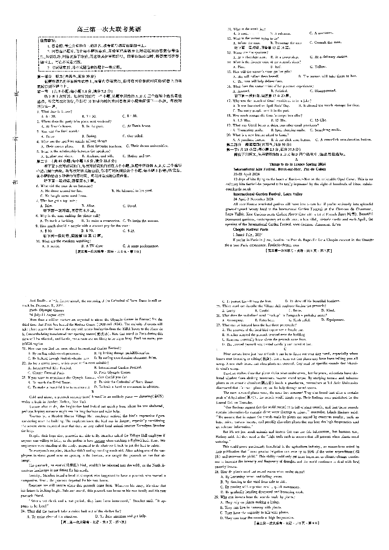 河北省邯郸市部分学校2025届高三上学期第一次大联考模拟预测英语