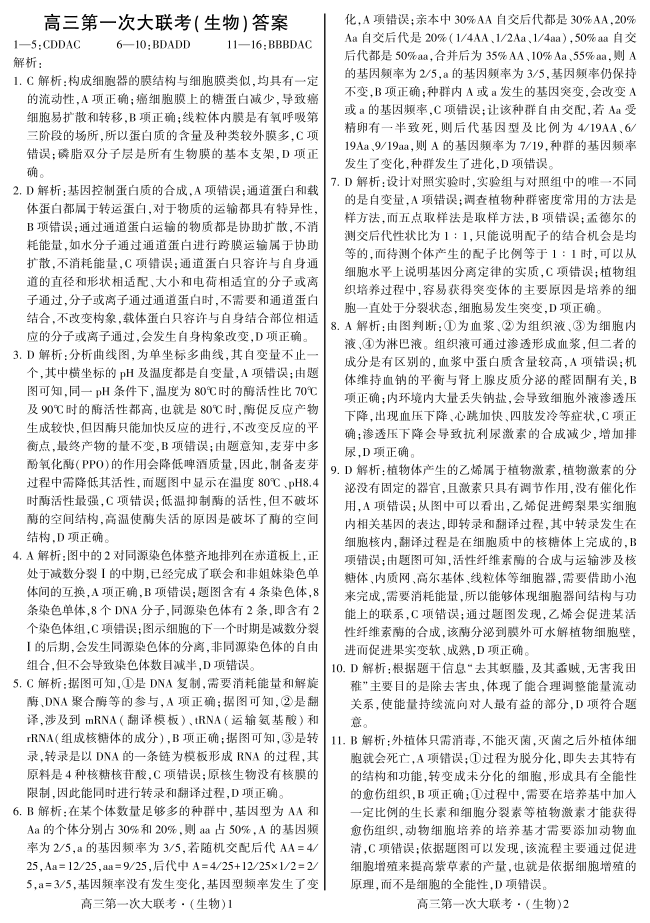 河北省邯郸市部分学校2025届高三上学期第一次大联考模拟预测生物答案