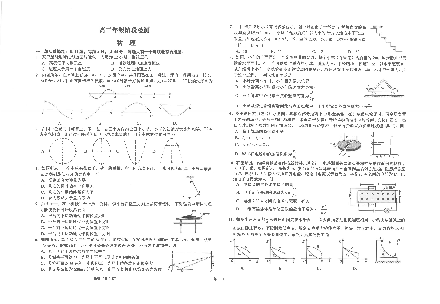 江苏省海安高级中学2025届高三上学期12月月考物理+答案