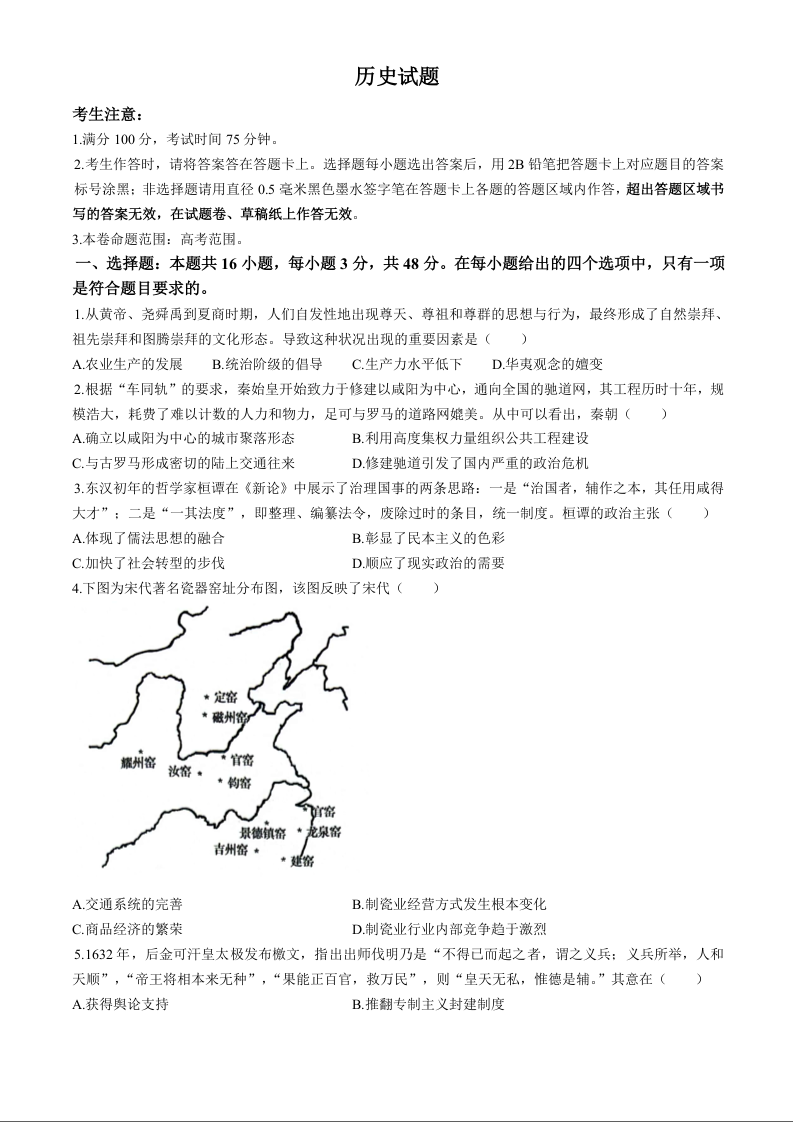 安徽县中联盟2024-2025学年高三9月联考历史试题