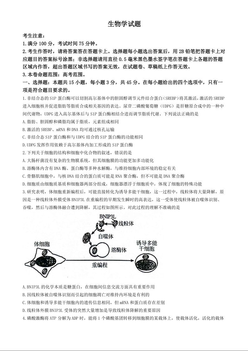 安徽县中联盟2024-2025学年高三9月联考生物试题