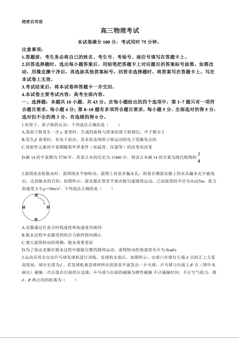 甘肃青海宁夏部分学校2025届高三9月开学大联考物理+答案