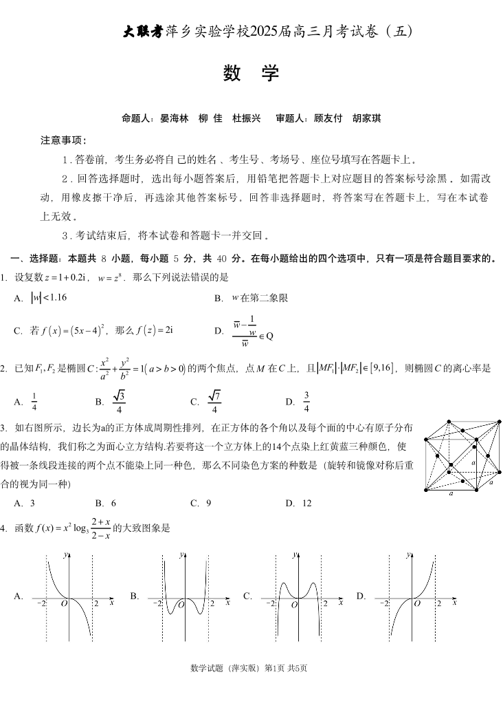 江西省萍乡市萍乡实验2025届高三上学期月考卷(五)数学
