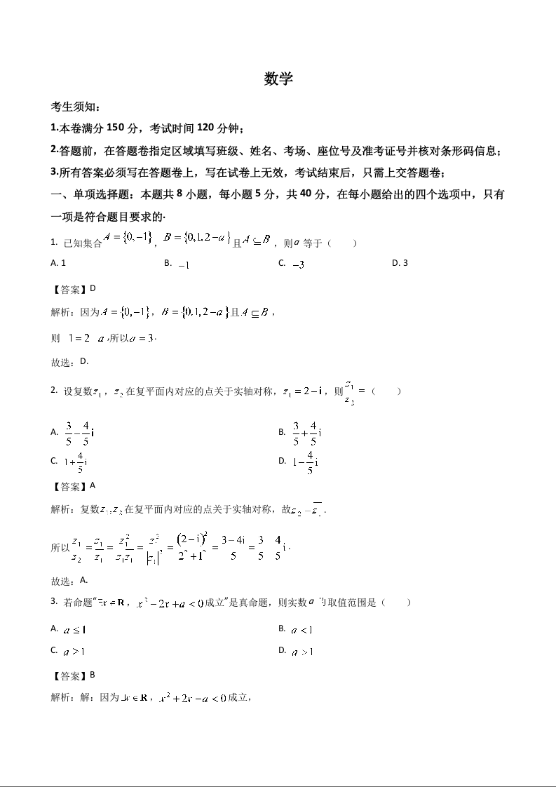 浙江省慈溪中学、舟山中学等多校2025届高三上学期期中考试数学+答案