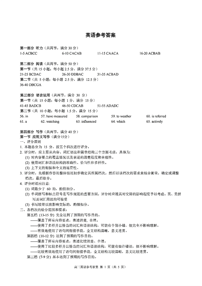 浙江省慈溪中学、舟山中学等多校2025届高三上学期期中考试英语答案
