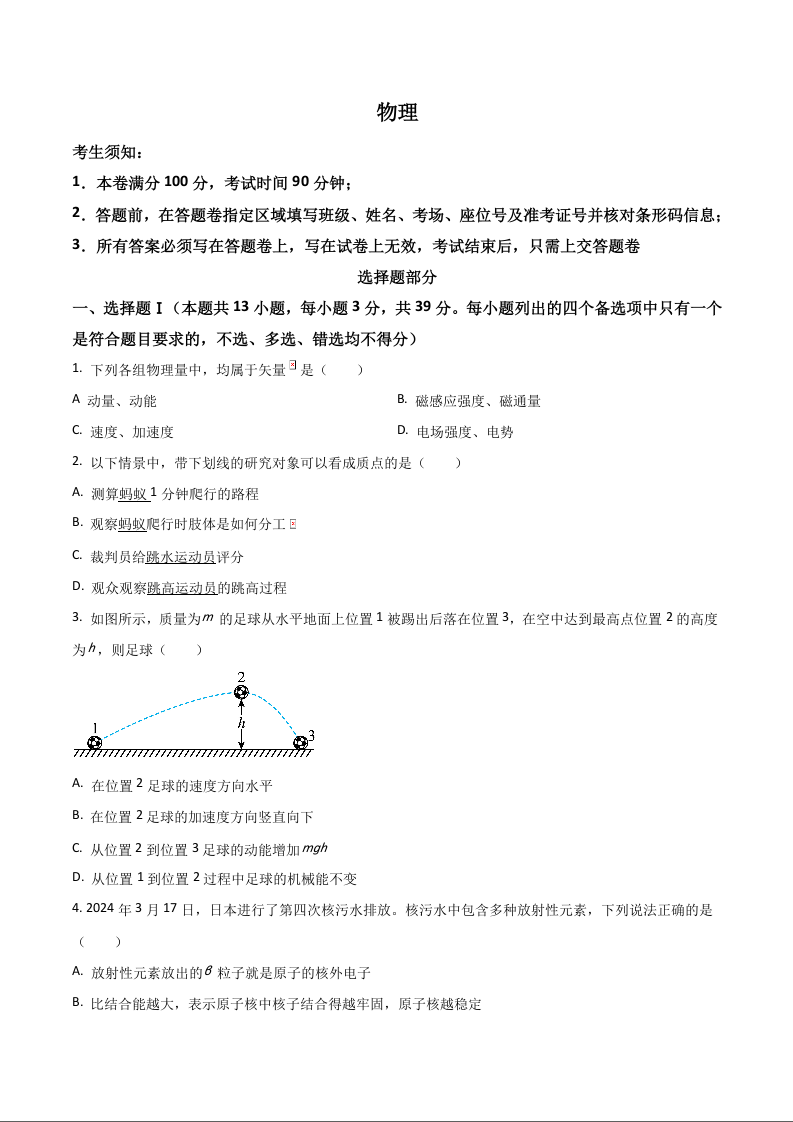 浙江省慈溪中学、舟山中学等多校2025届高三上学期期中考试物理+答案