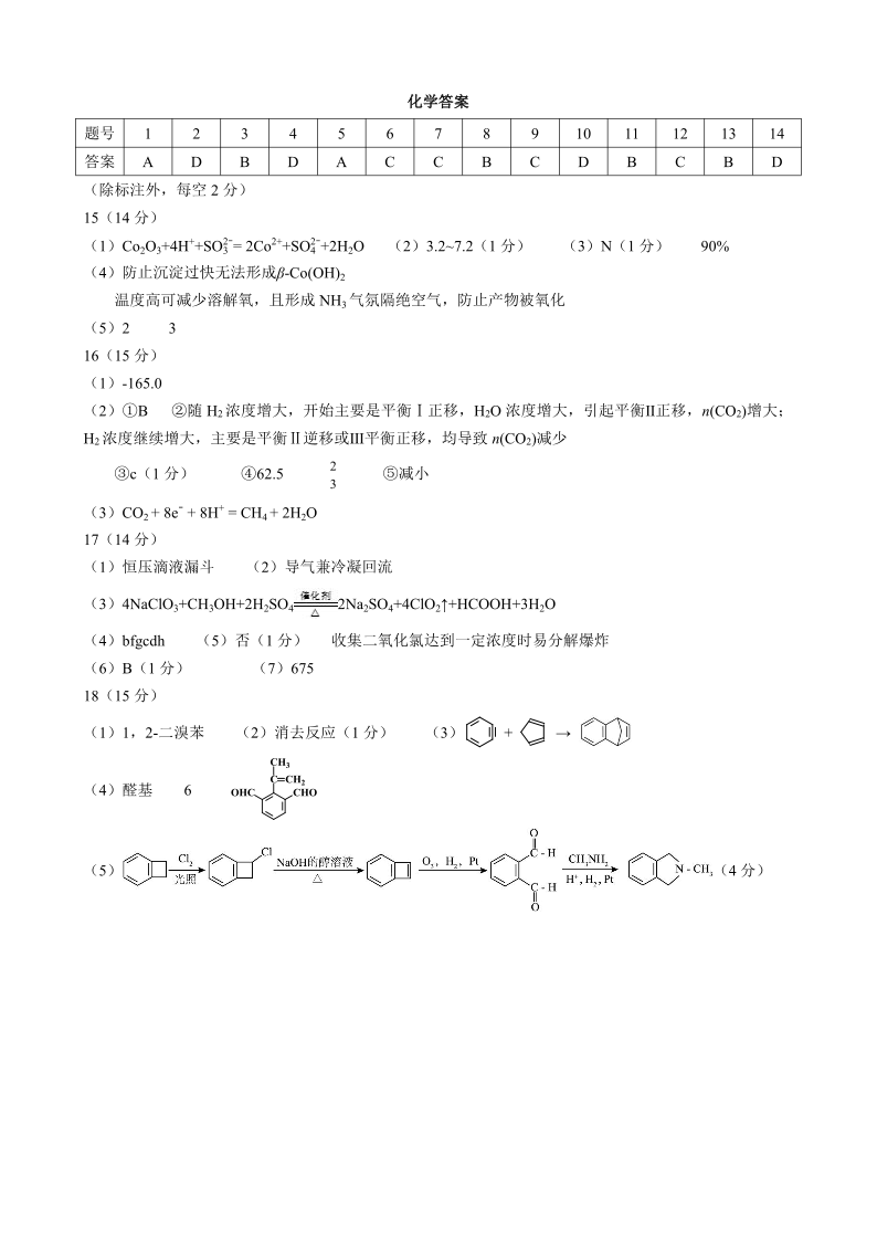 广西名校2025届高三年级9月联合调研测试化学答案