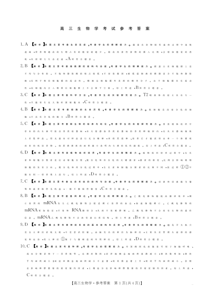 广西省部分高中2025届高三9月联考生物答案