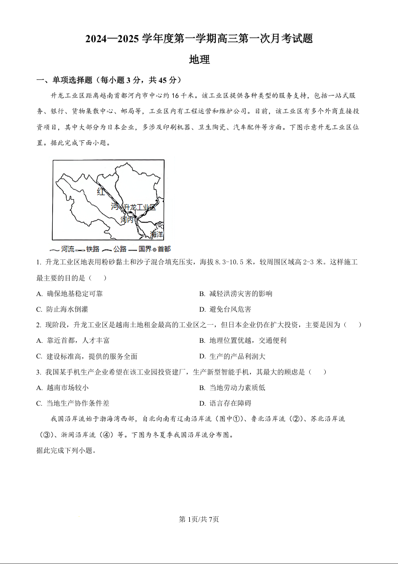 海南省文昌中学2024-2025学年度第一学期高三第一次月考试题地理试题(原卷版)