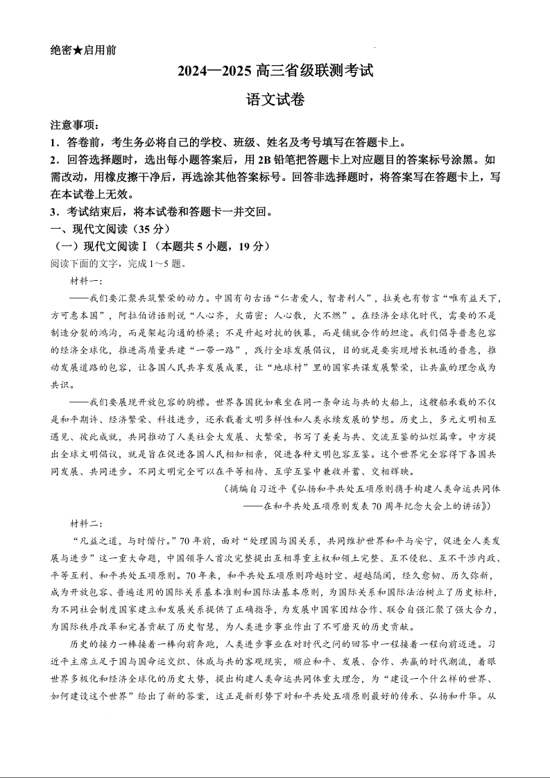 河北省2024-2025届高三省级联测考试(9月)语文试题