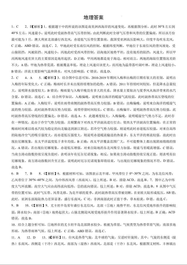 河南省许昌高级中学2024-2025学年高三上学期开学检测地理答案