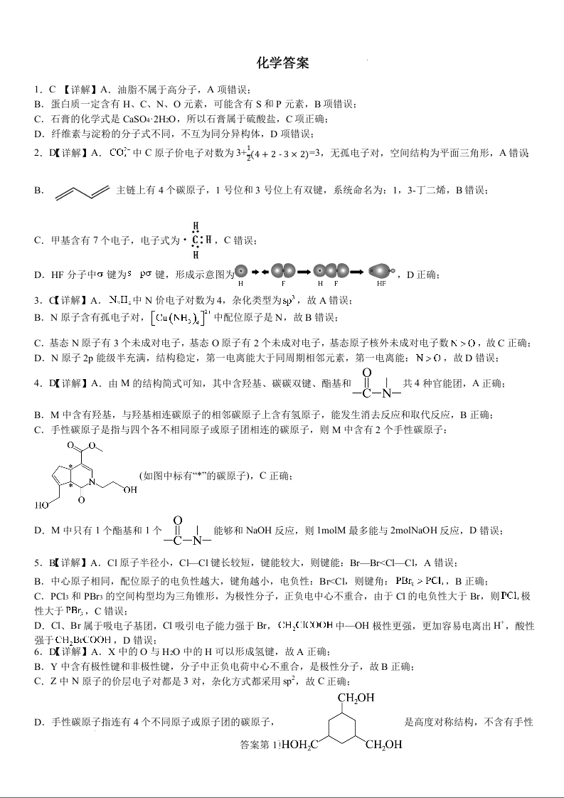河南省许昌高级中学2024-2025学年高三上学期开学检测化学答案