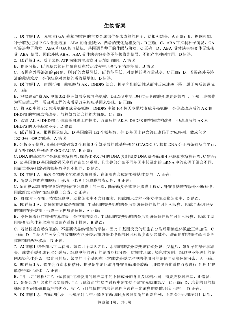 河南省许昌高级中学2024-2025学年高三上学期开学检测生物答案