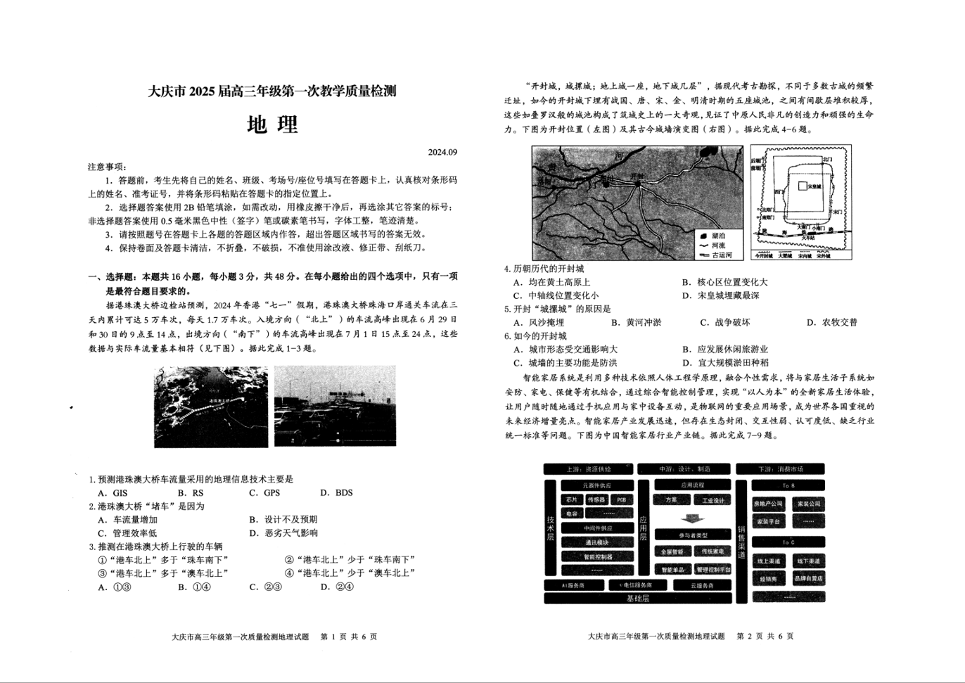 黑龙江省大庆市2025届高三上学期第一次教学质量检测地理