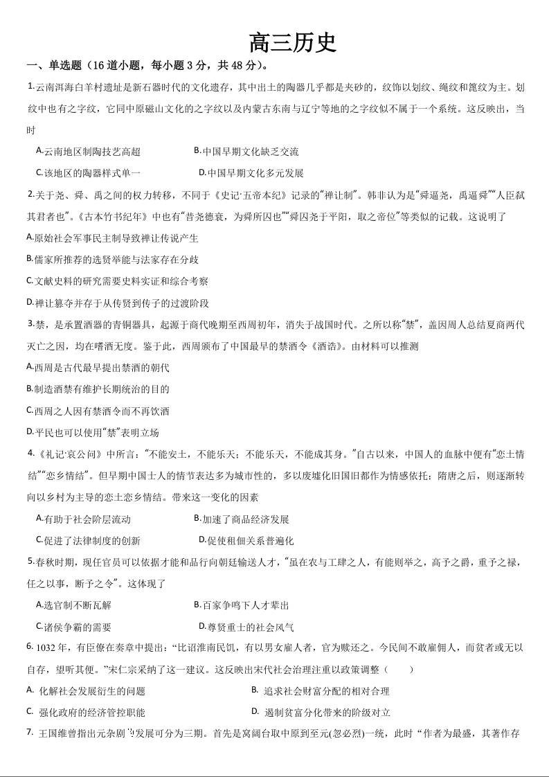 吉林省通化市梅河口市第五中学2025届高三上学期9月月考历史+答案