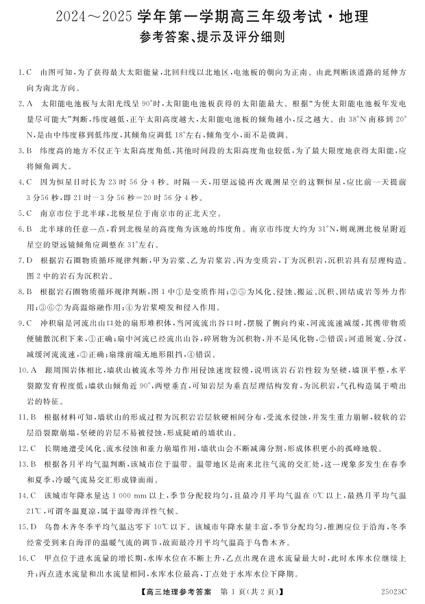 江苏省盐城市盐城八校2024-2025学年第一学期高三年级考试地理答案