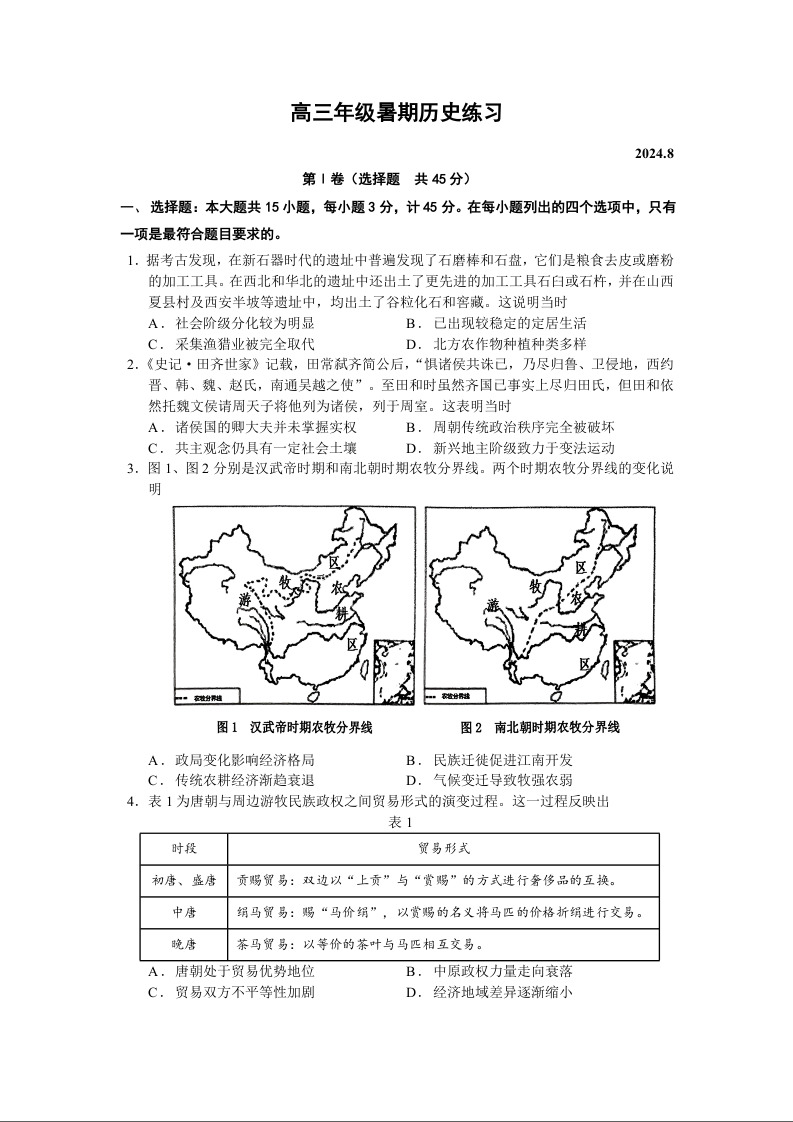 江苏省扬州中学2025届高三年级暑期检测历史+答案