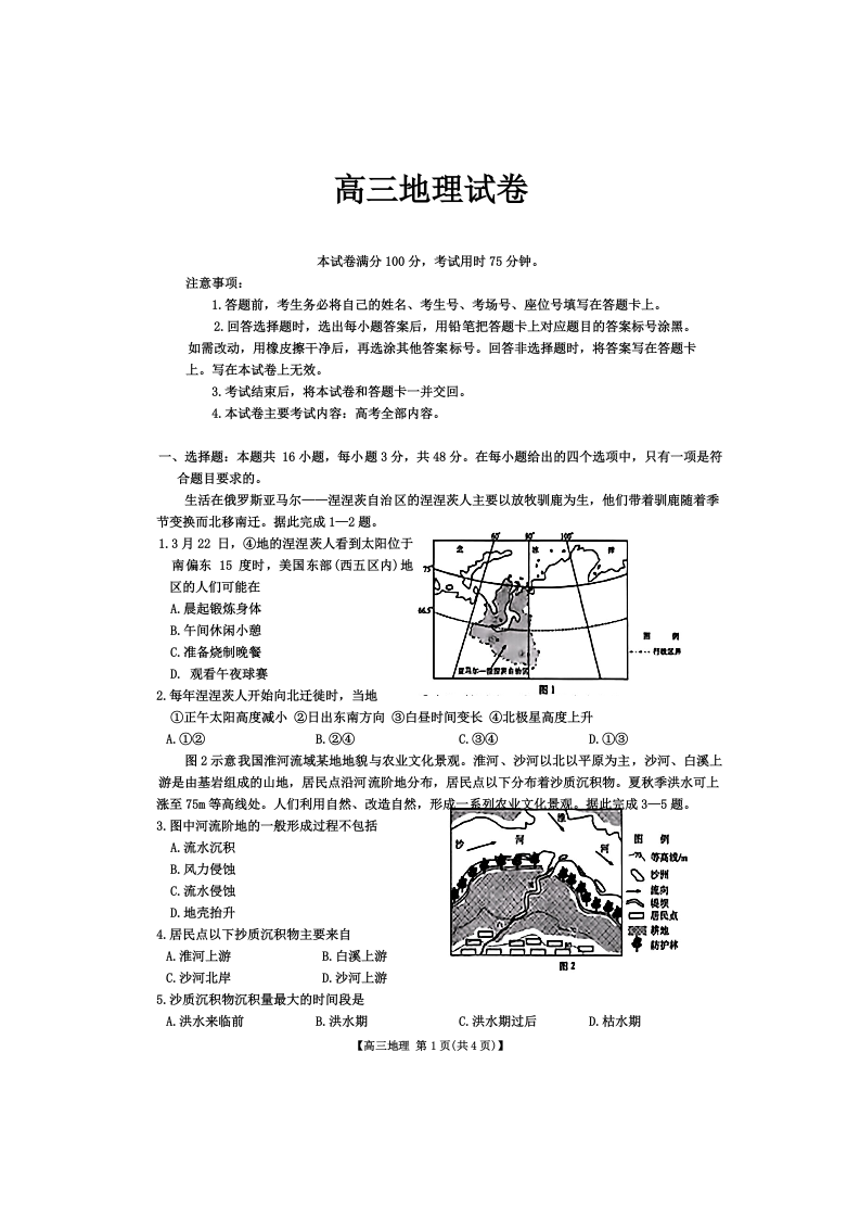 江西省部分高中2025届高三9月开学考试地理+答案