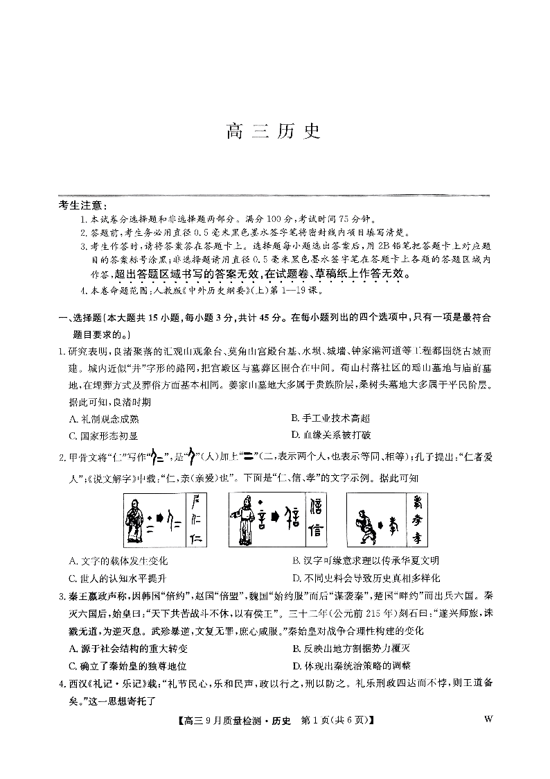 江西省九师联盟2025届高三年级上学期9月联考历史