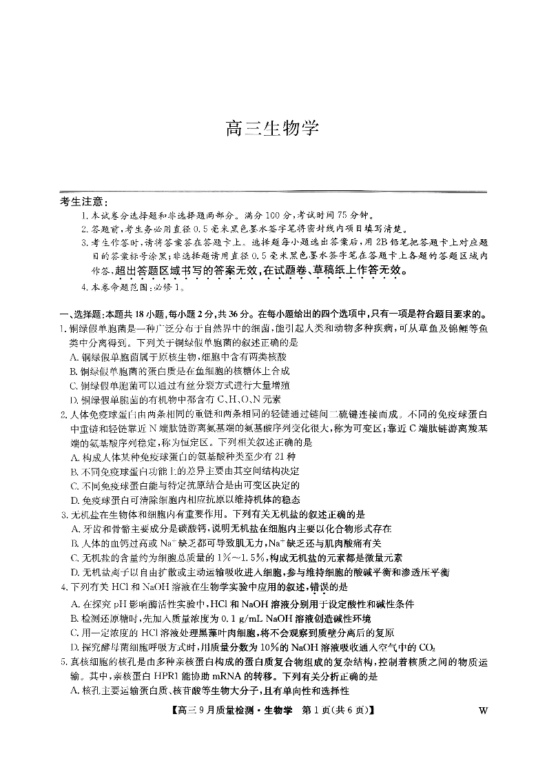江西省九师联盟2025届高三年级上学期9月联考生物