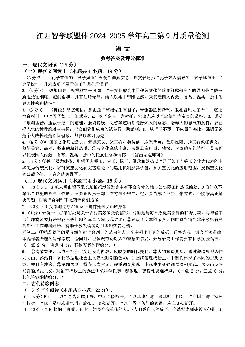 江西智学联盟体2024-2025学年高三9月质量检测 语文答案