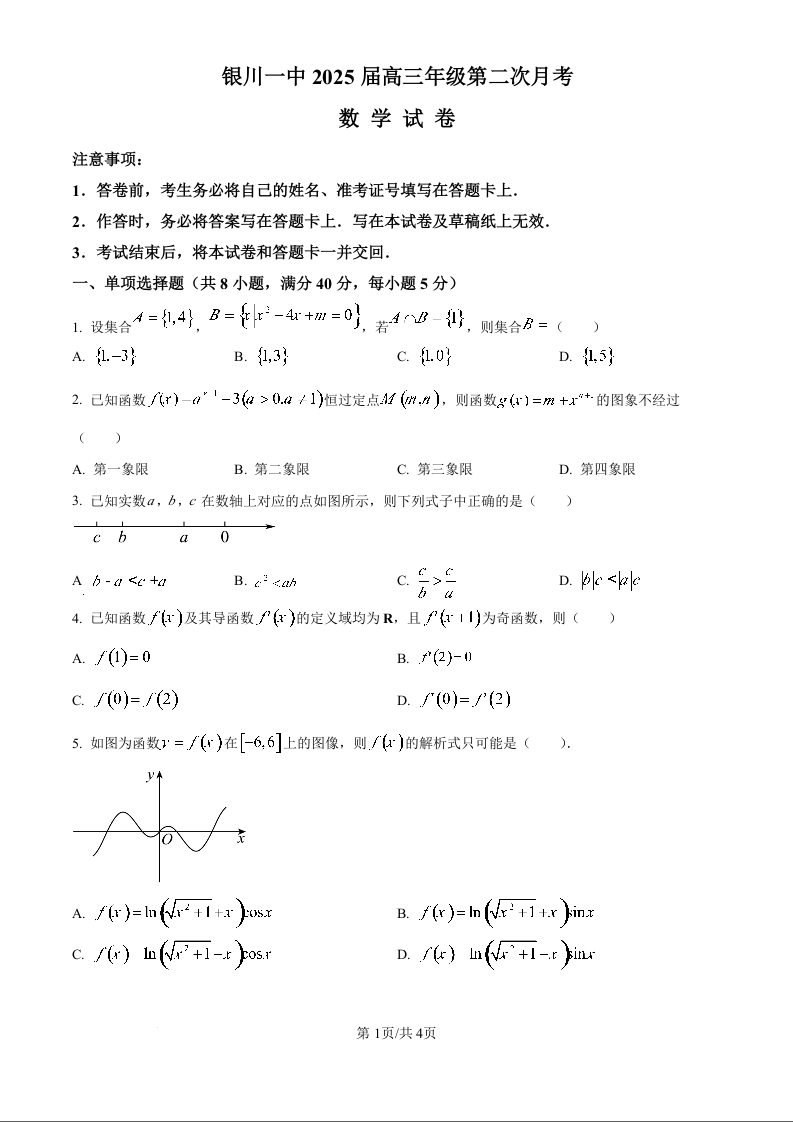 宁夏银川一中2025届高三上学期第二次月考数学试卷(原卷版)