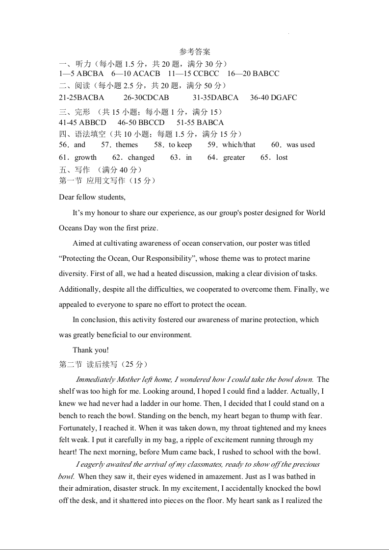 宁夏回族自治区石嘴山市第三中学2024-2025学年第一学期高三第一次月考试卷英语答案
