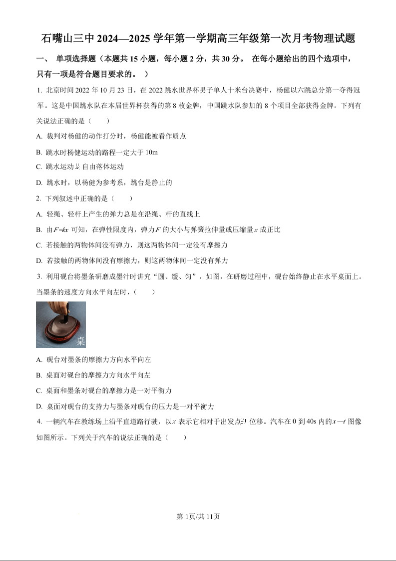 宁夏回族自治区石嘴山市第三中学2024-2025学年第一学期高三第一次月考试卷物理试题(原卷版)