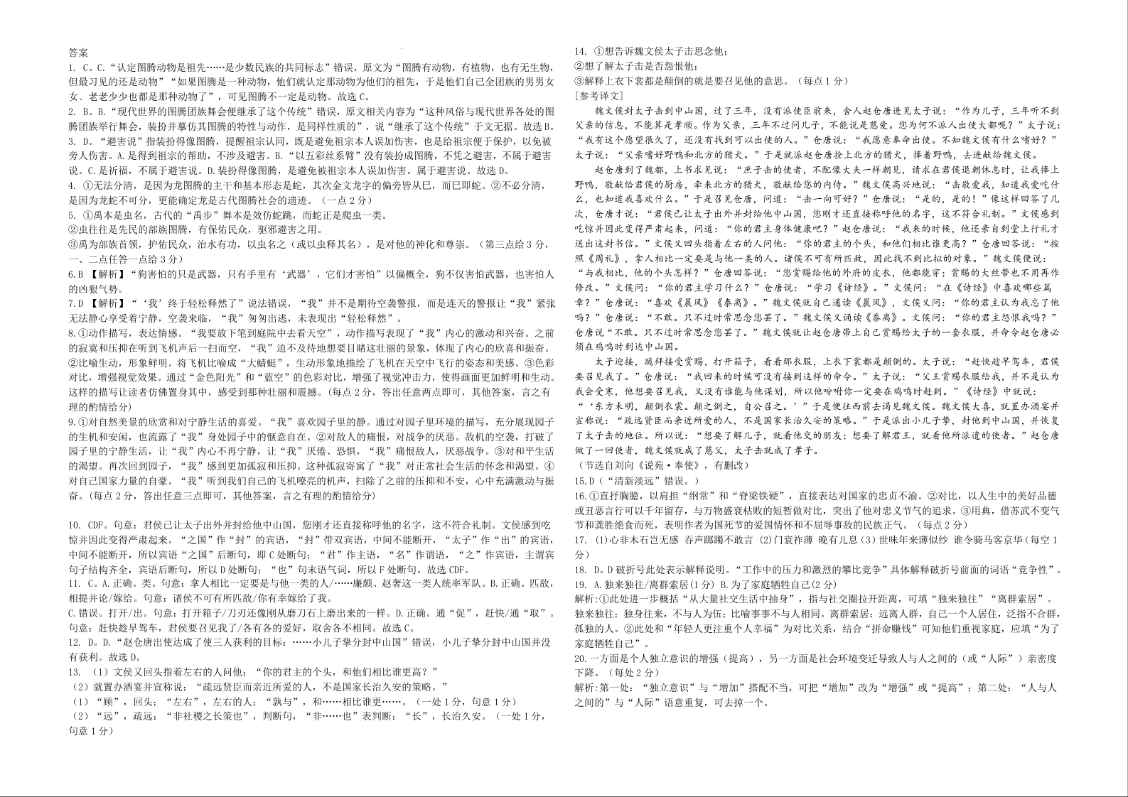 宁夏回族自治区石嘴山市第一中学2024-2025学年度高三年级开学测试语文答案