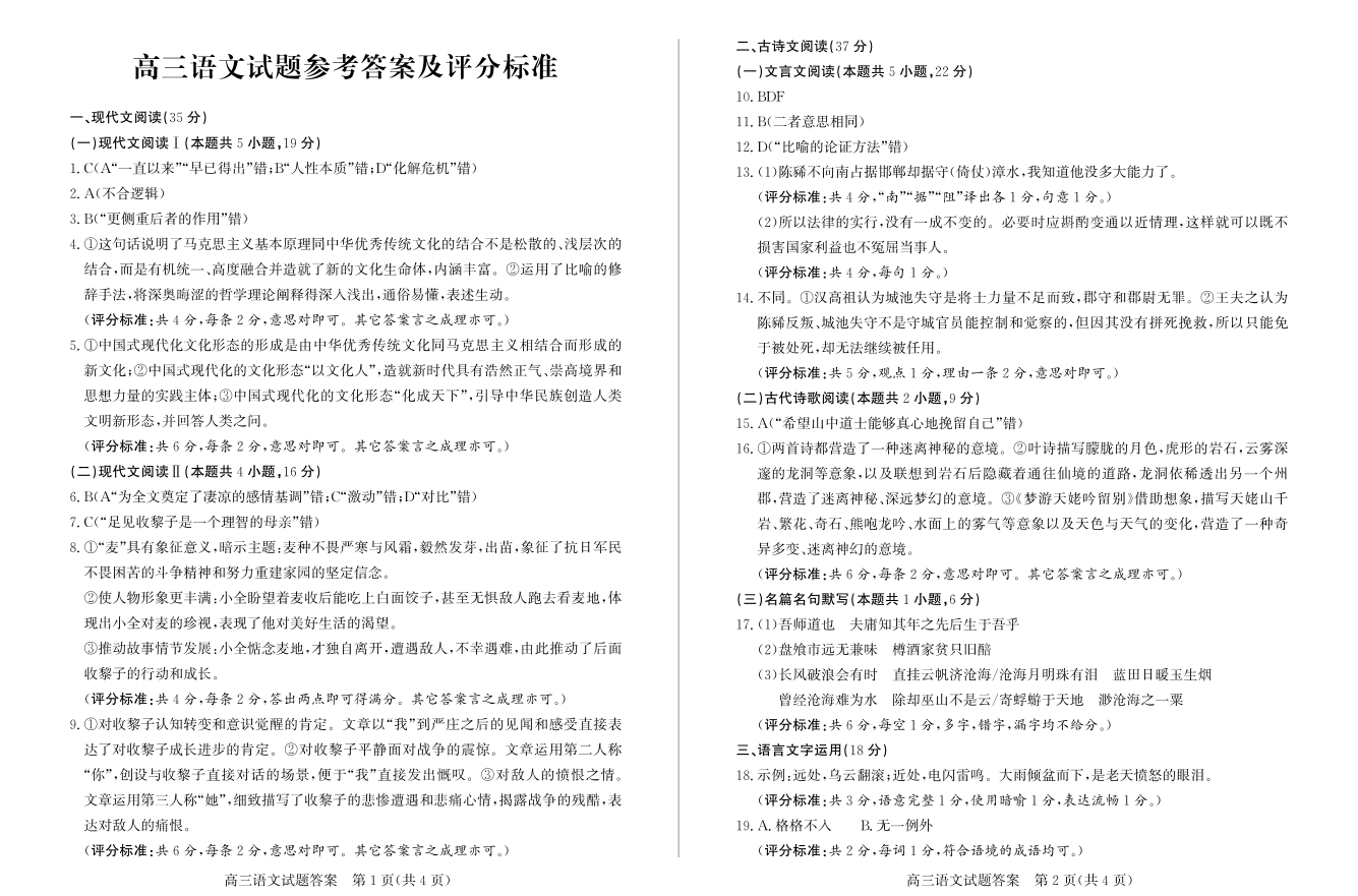 山东省德州市2025届高三上学期9月开学考试语文答案