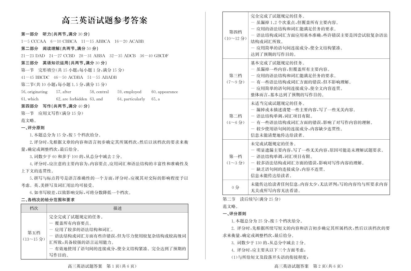 山东省德州市2025届高三上学期9月开学考试英语答案