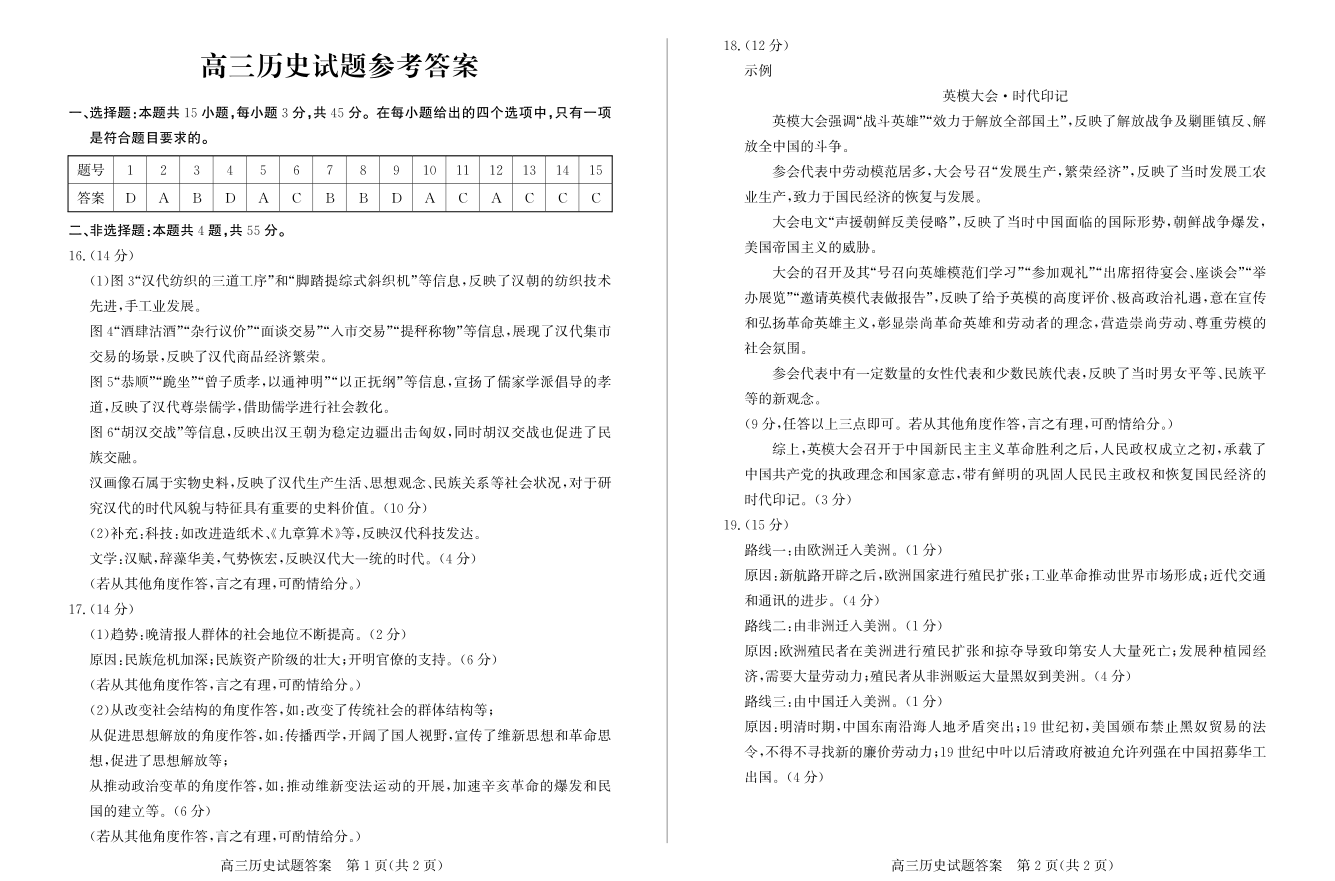 山东省德州市2025届高三上学期9月开学考试历史答案
