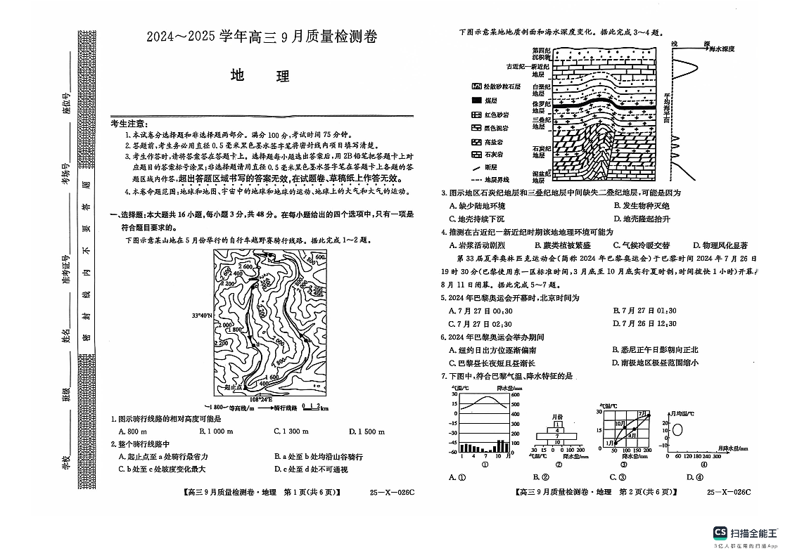 山西省部分高中2024-2025学年高三9月质量检测卷地理