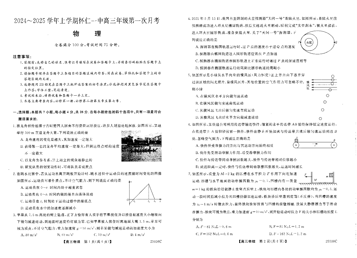山西省朔州市怀仁市第一中学校2024-2025学前上学期高三年级第一次月考物理