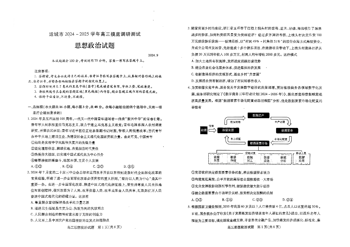 山西省运城市2024-2025学年高三摸底调研测试政治