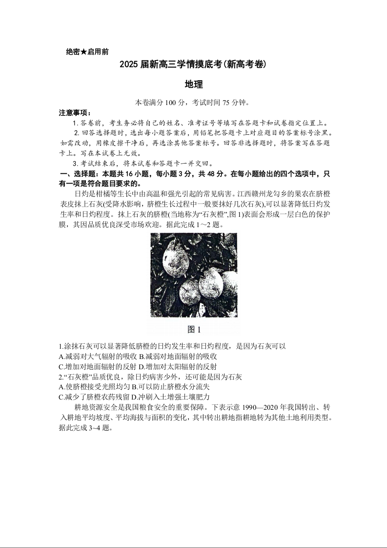 陕西省安康市2025届新高三学情摸底考(新高考卷)地理+答案
