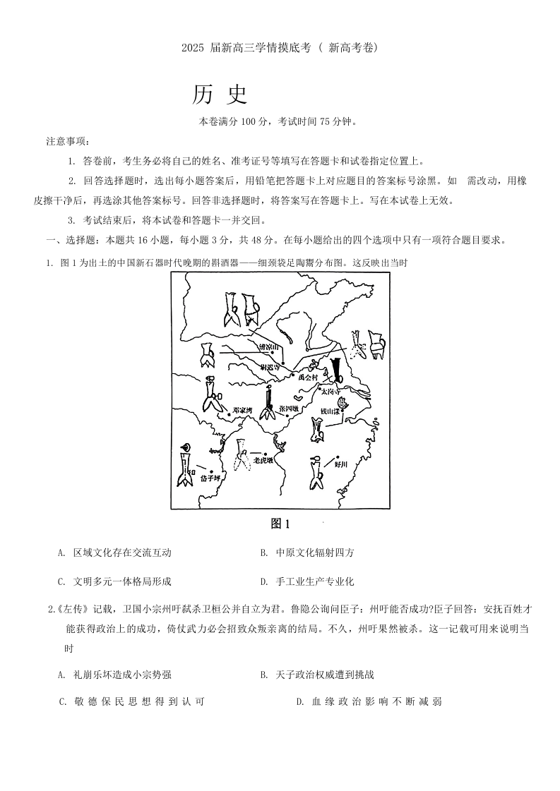 陕西省安康市2025届新高三学情摸底考(新高考卷)历史+答案