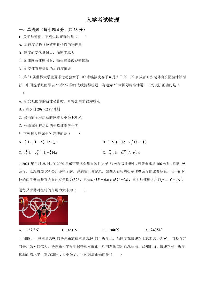 四川省成都列五中学2025届高三入学摸底测试物理试题(原卷版)