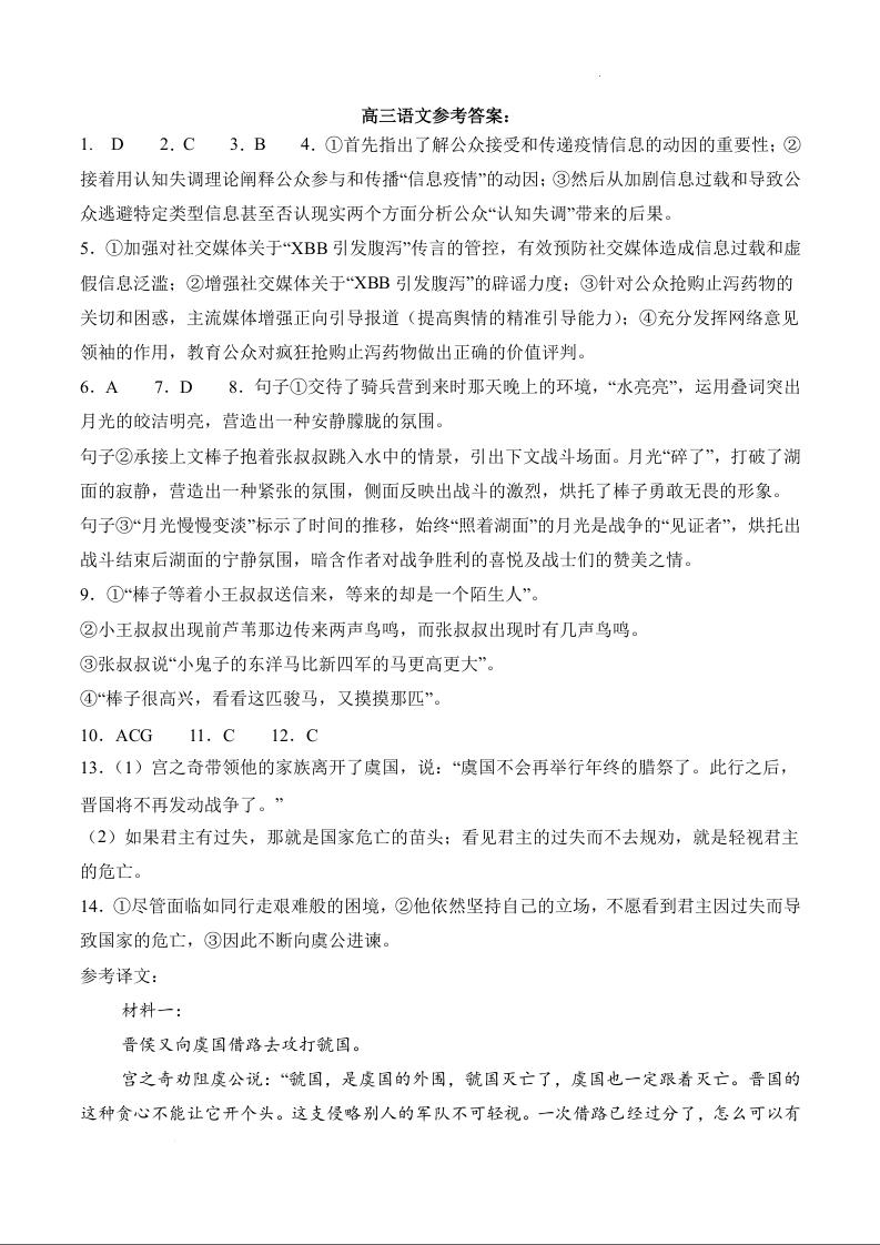 四川省泸州市叙永第一中学校高2022级高三上学期开学考试语文答案