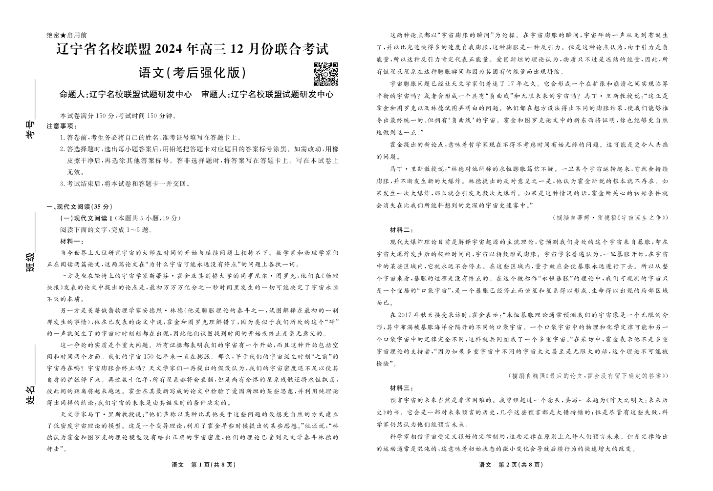 辽宁名校联盟2024年高三12月联考(考后强化版)语文
