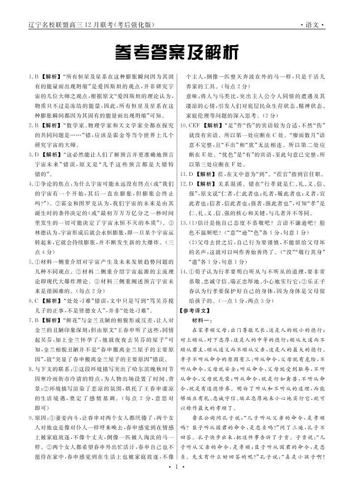 辽宁名校联盟2024年高三12月联考(考后强化版)语文答案