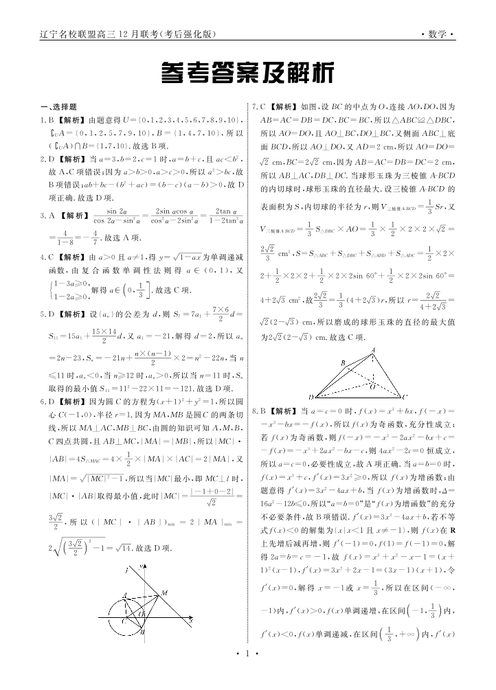 辽宁名校联盟2024年高三12月联考(考后强化版)数学答案