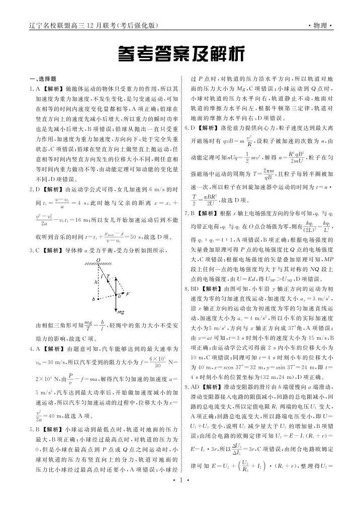 辽宁名校联盟2024年高三12月联考(考后强化版)物理答案